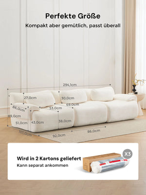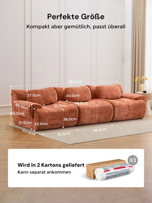 Mit hochwertigem Chenille-Stoff bezogen, bietet das Sofa eine weiche, hautfreundliche Haptik und einen eleganten Look. Seine flauschige Textur verleiht jedem Wohnraum Wärme und Eleganz.