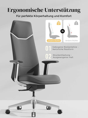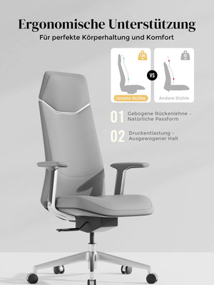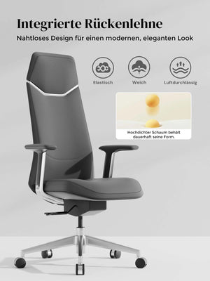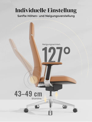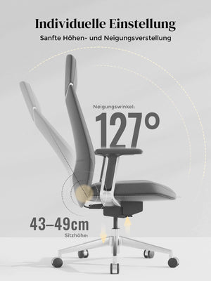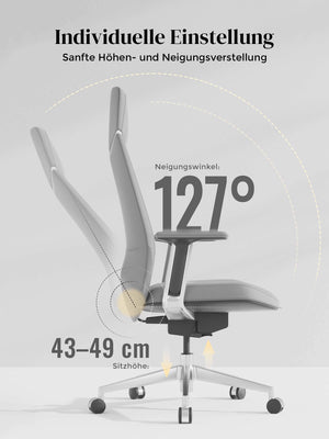Die Rückenlehne unterstützt eine stabile, komfortable Neigung bis zu 127°, für entspanntes Zurücklehnen.