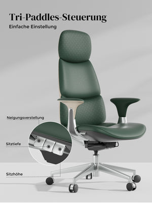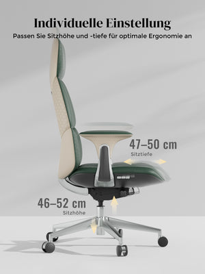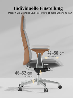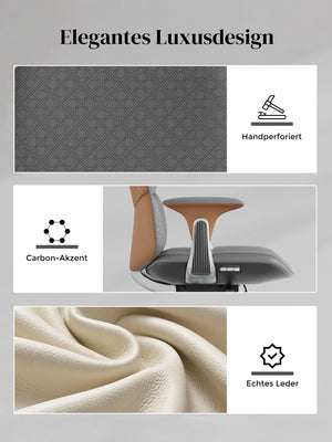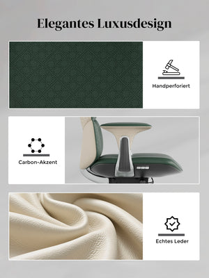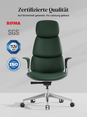 · Rollen: Hochwertige, halb aus Aluminium gefertigte Silent-Rollen, zertifiziert nach SGS / Greenguard Gold / TÜV-geprüft, ergonomisch