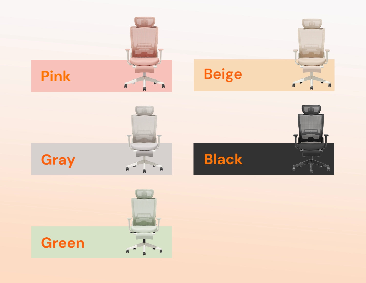Erhältlich in fünf Farben – Schwarz, Grau, Rosa, Grün und Beige. Passt zu verschiedenen Wohn- und Büroeinrichtungen und lässt sich harmonisch mit Wänden, Böden und Textilien kombinieren.