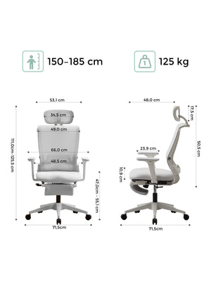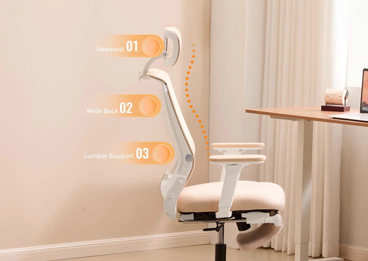Das S4 bietet vollwertige Unterstützung in einem kompakten Design. Die verstellbare Kopfstütze stützt den Nacken, die geschwungene Rückenlehne richtet die Wirbelsäule aus und das Lendenkissen lindert den Druck im unteren Rücken – perfekt für lange Stunden in kleineren Räumen.