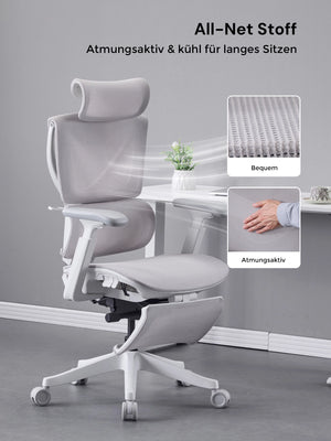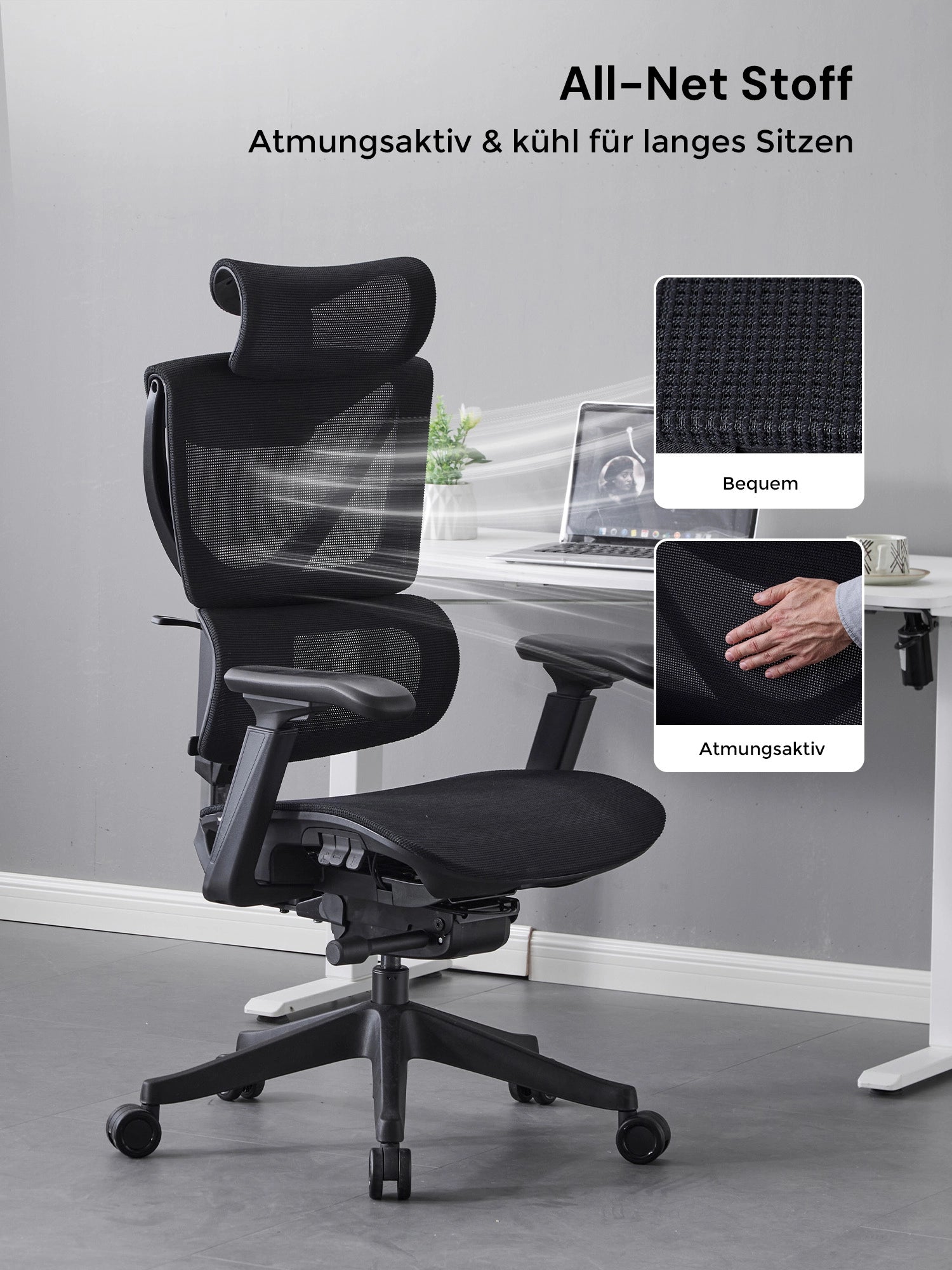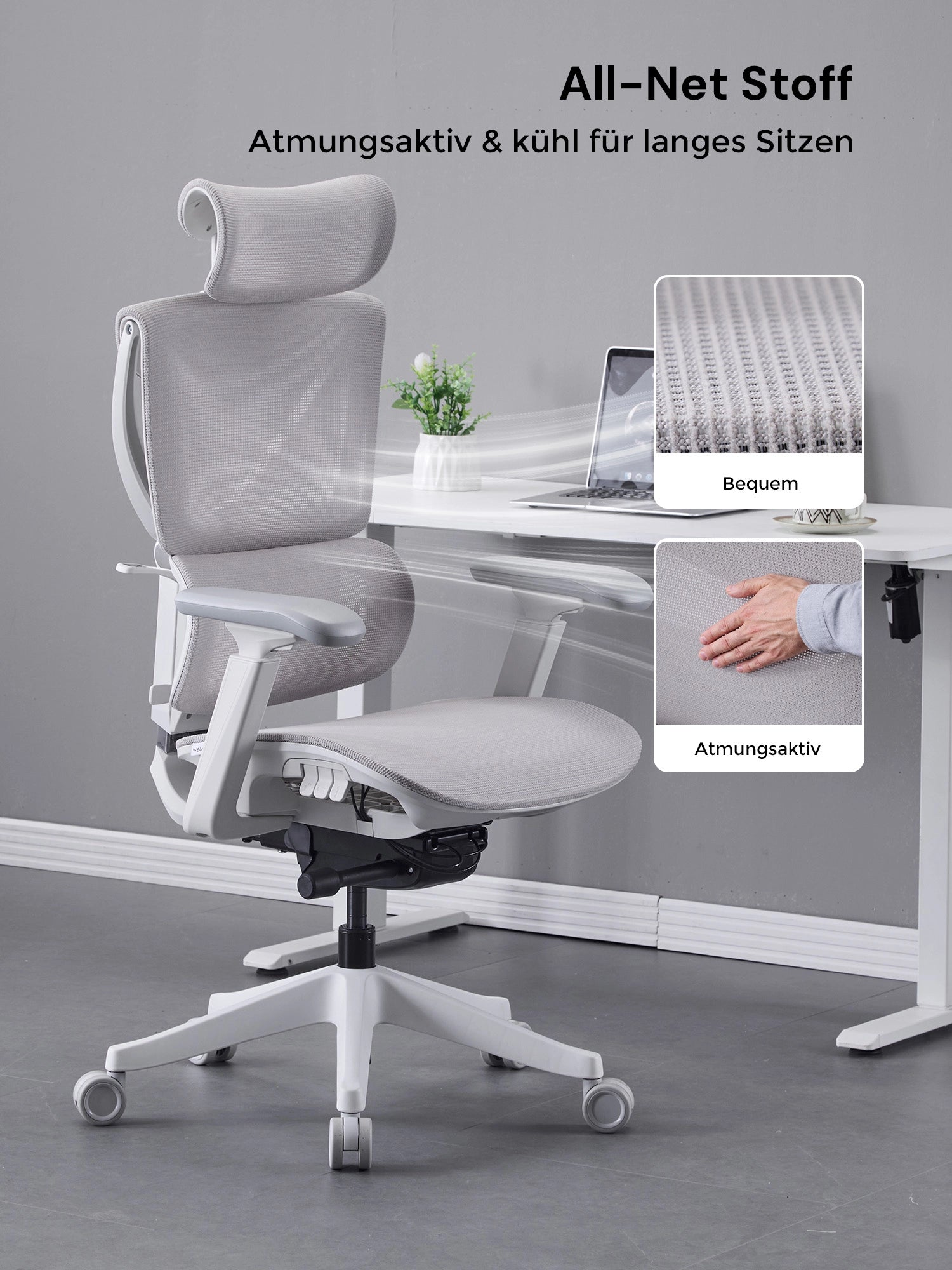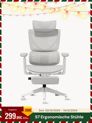 Mit Maßen 73,4 × 73,4 × 110,5 – 134,9cm und Gaslift der Klasse 4 verbindet der S7 modernes Design mit Stabilität und hochwertiger Verarbeitung.