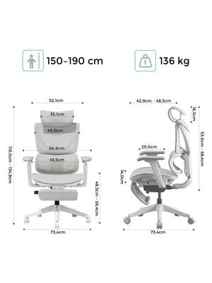 Alle Einstellungen laufen über eine stabile, langlebige Basis. Präzise Kontrolle auch bei langen Arbeitsstunden, belastbar bis 136 kg.