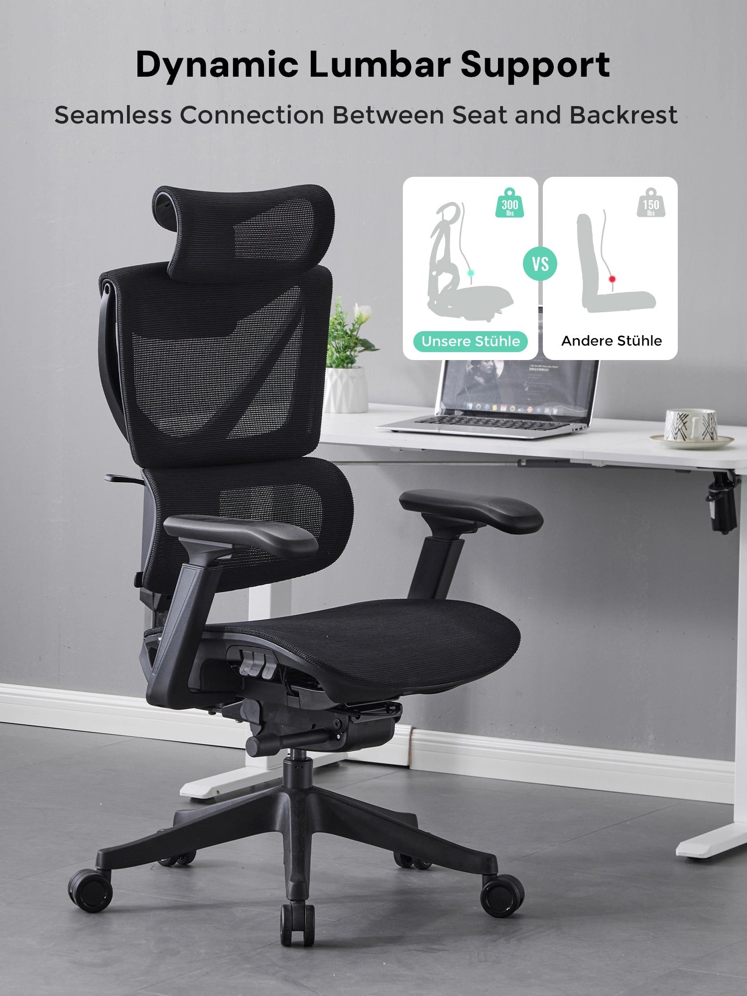 Atmungsaktive Mesh-Rückenlehne mit Lordosenstütze sorgt für optimale Haltung und Belüftung. Kompakt, robust und ideal für Home Office oder kollaborative Arbeitsbereiche.