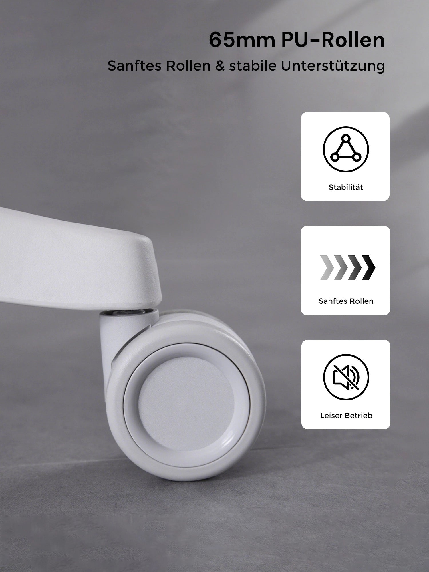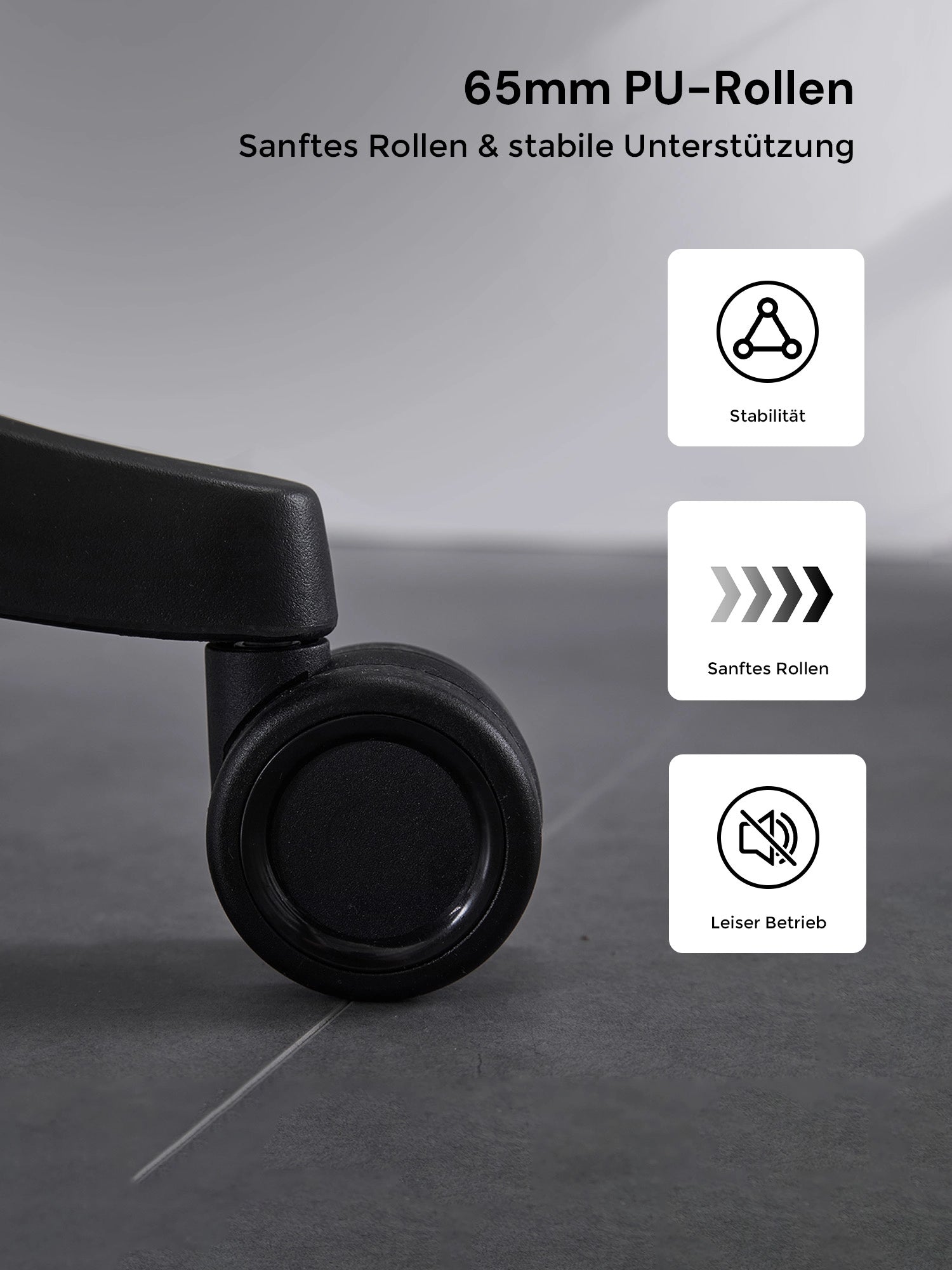 Leise PU-Rollen gleiten nahezu geräuschlos – ideal für Zuhause oder Büro.