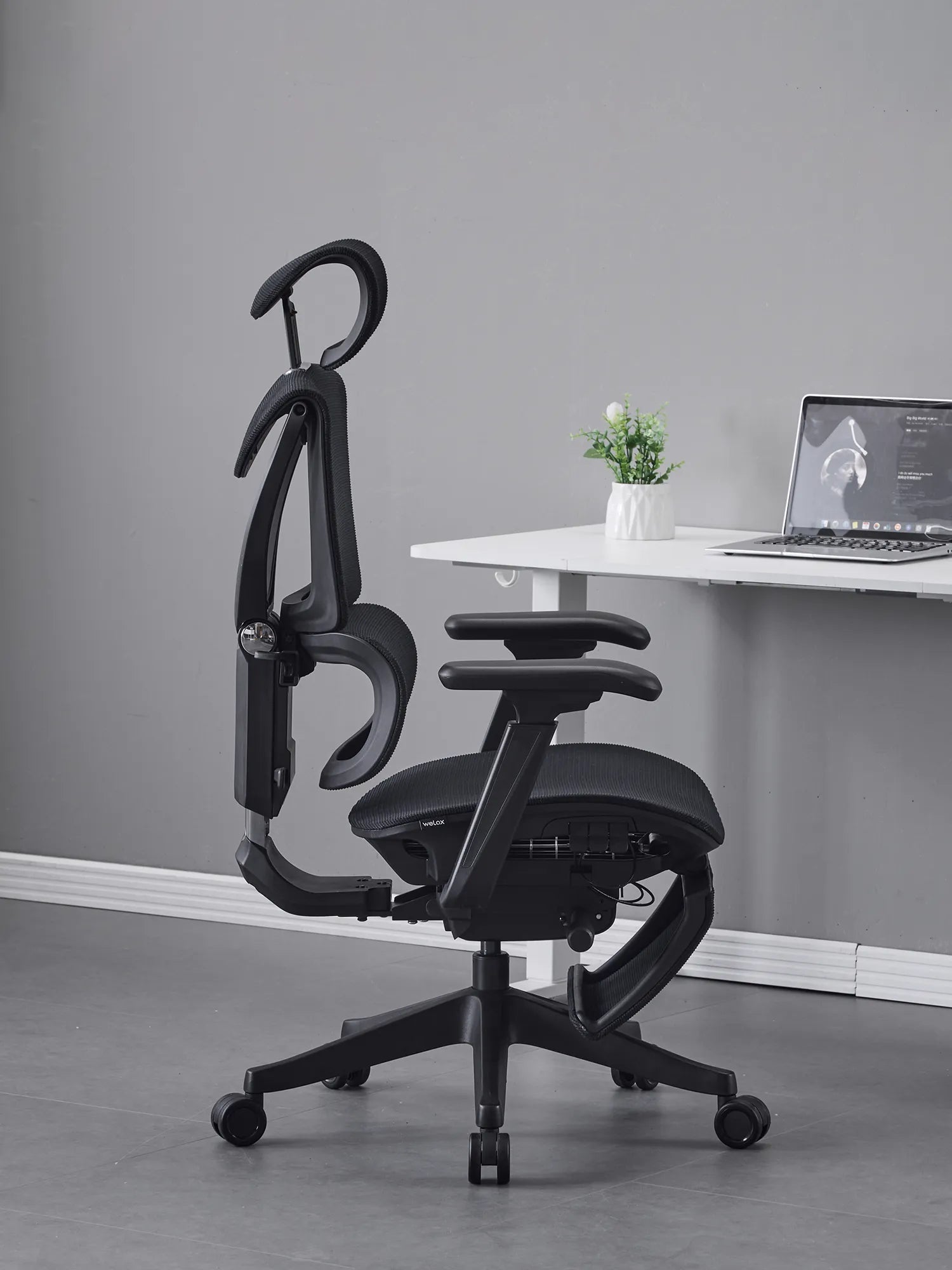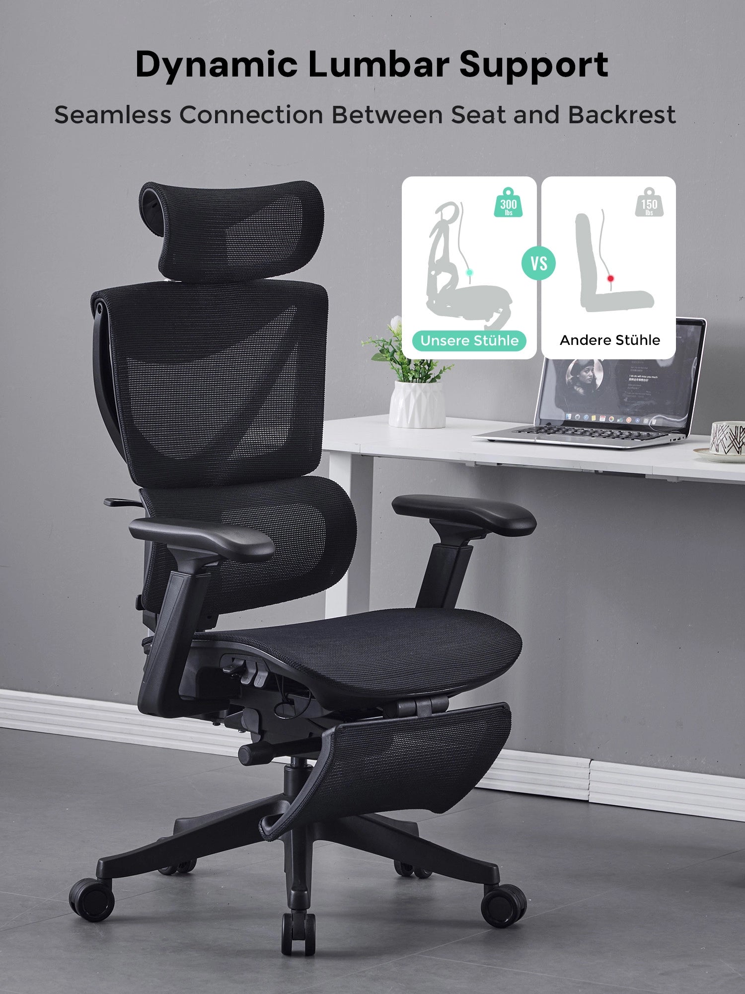Komfort von Kopf bis Taille. Die verstellbare Kopfstütze stützt Ihren Nacken, die geschwungene Rückenlehne richtet Ihre Wirbelsäule aus und das dynamische Lendenkissen entlastet den unteren Rücken.