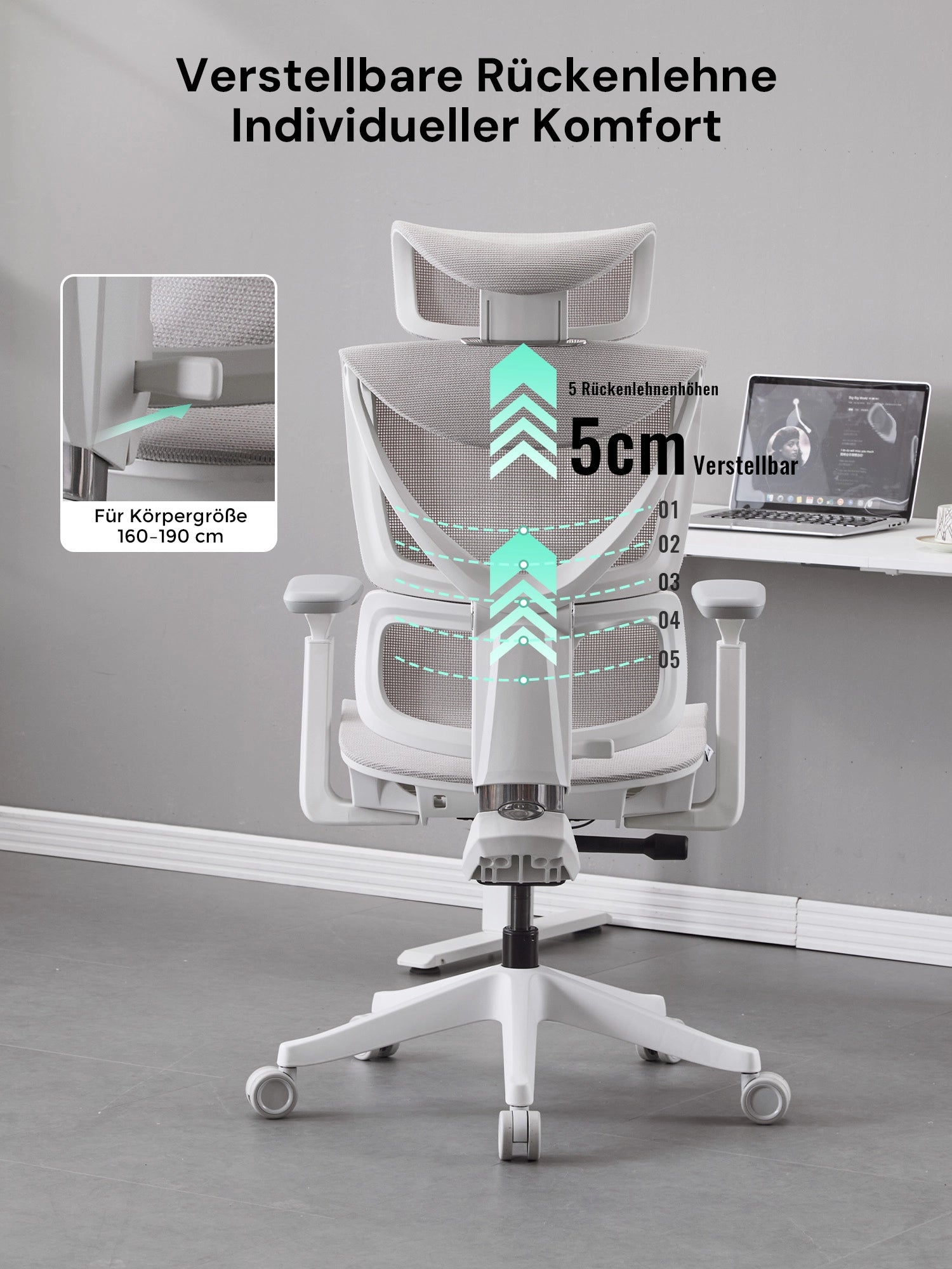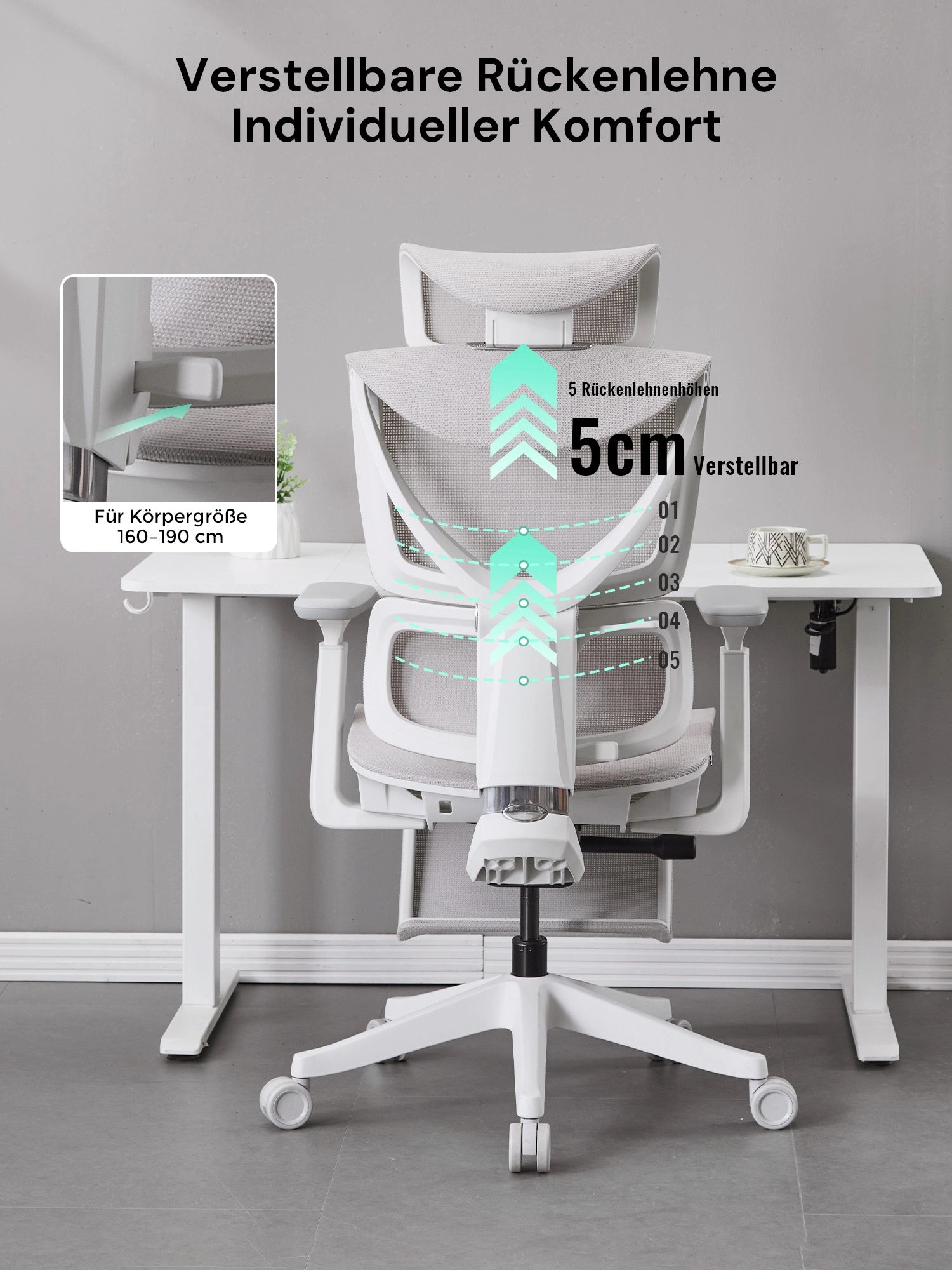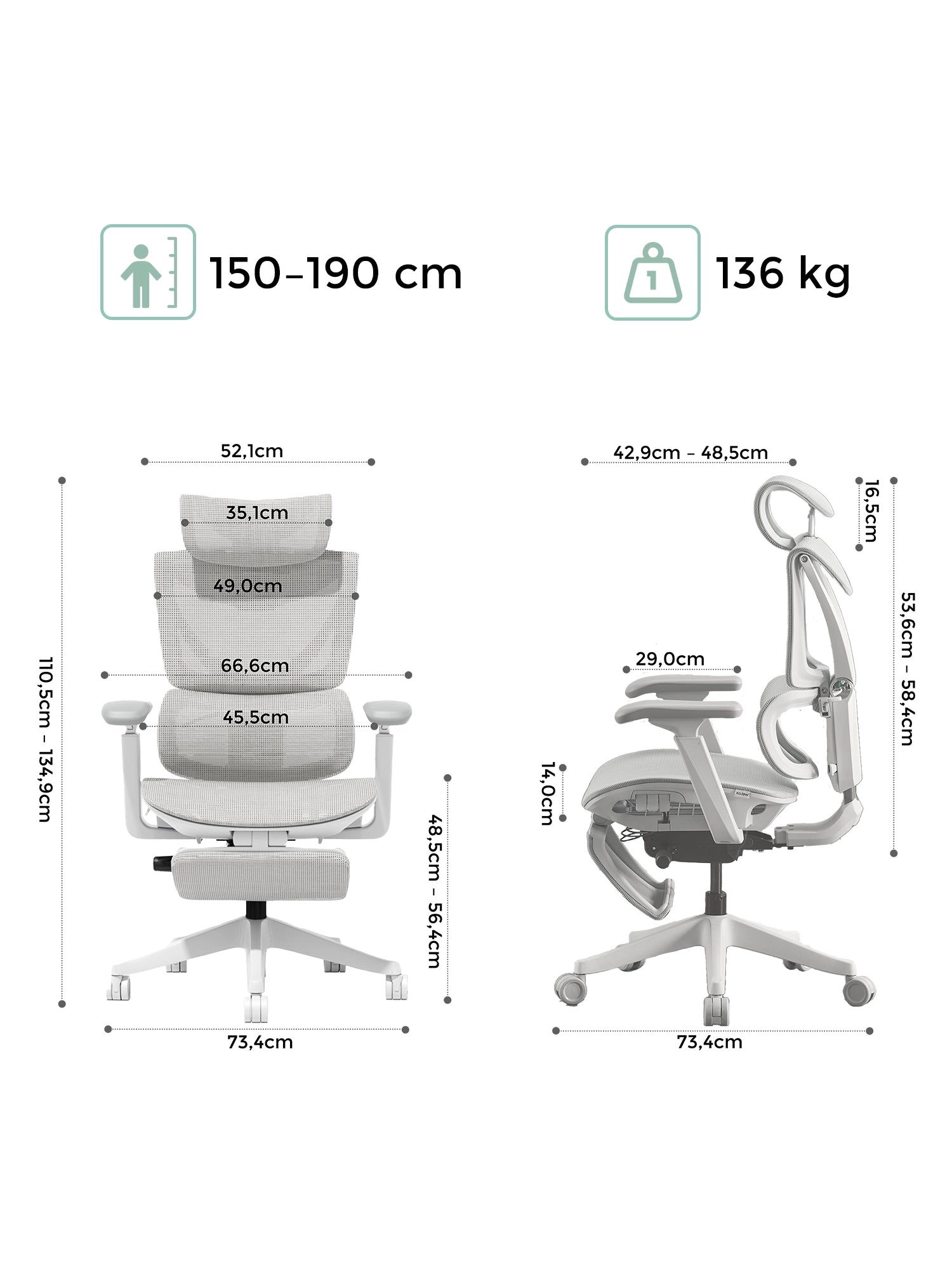 Alle Einstellungen laufen über eine stabile, langlebige Basis. Präzise Kontrolle auch bei langen Arbeitsstunden, belastbar bis 136 kg.
