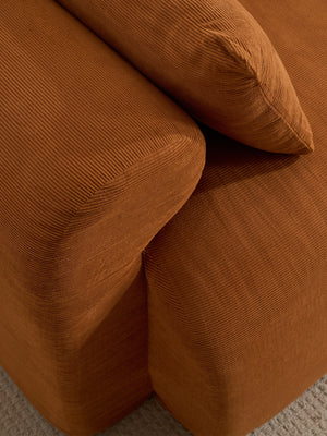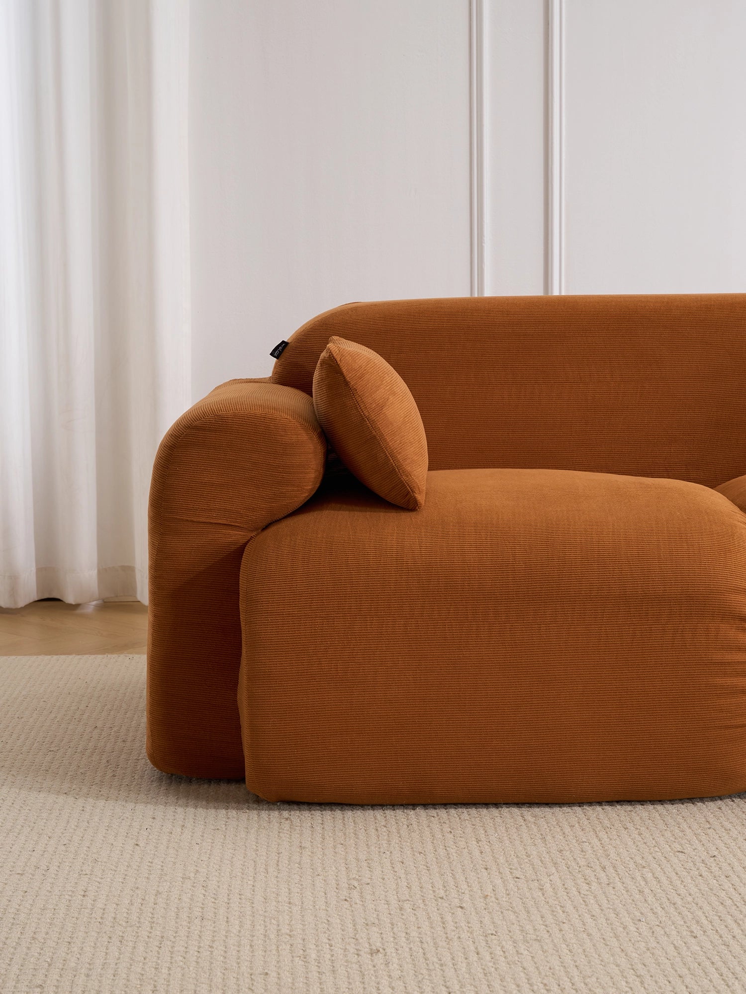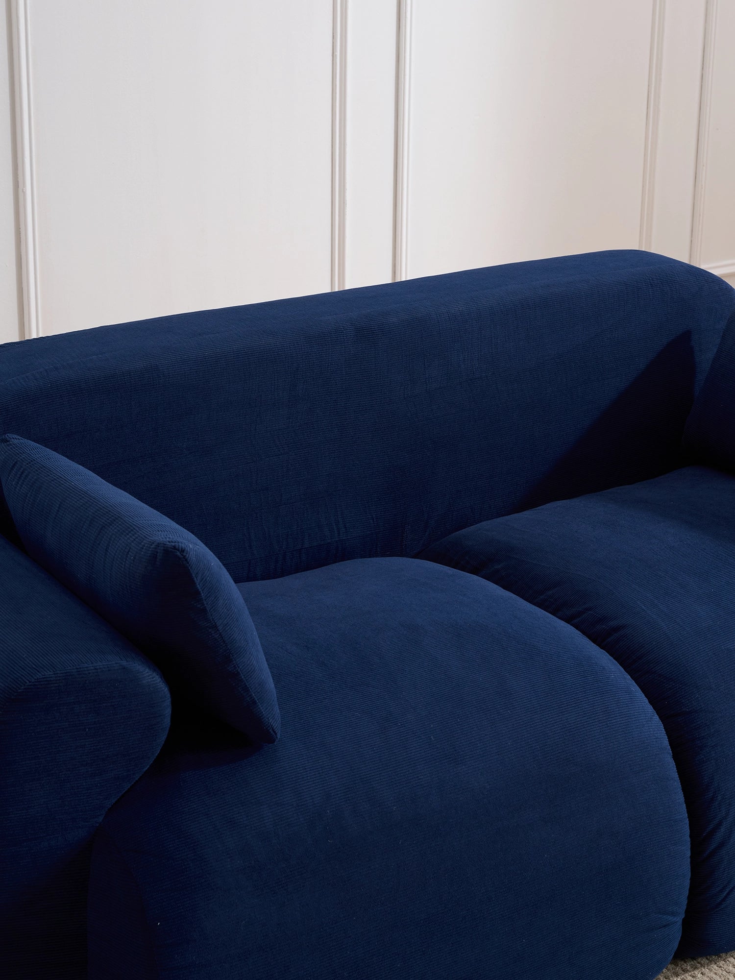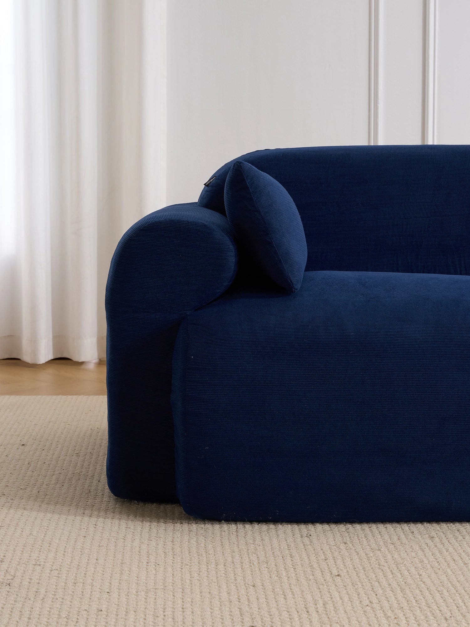 Vollständig abgerundete Formen und großzügige Polsterungen verleihen dem Sofa eine harmonische, einladende Ausstrahlung und machen es zum Blickfang in jedem Wohnraum.