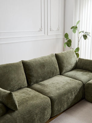 Mit hochwertigem Chenille-Stoff bezogen, bietet das Sofa eine sanfte, hautfreundliche Haptik mit edler Ausstrahlung. Die flauschige Struktur verleiht jedem Wohnraum Wärme und Eleganz.